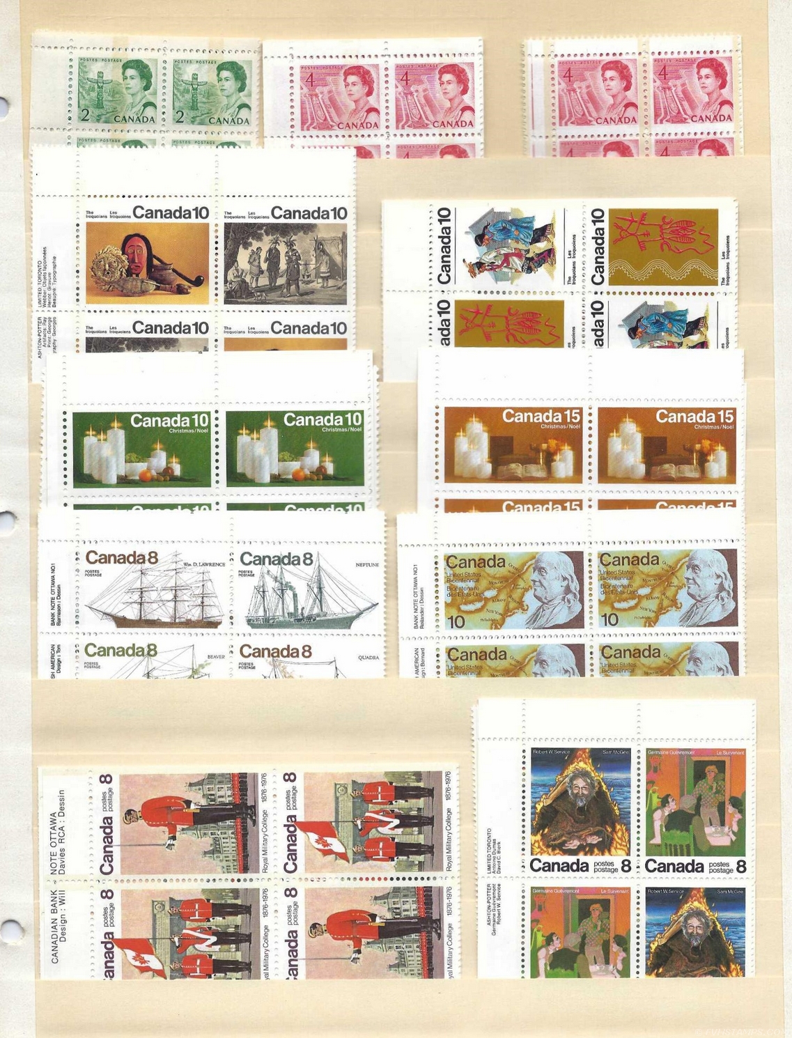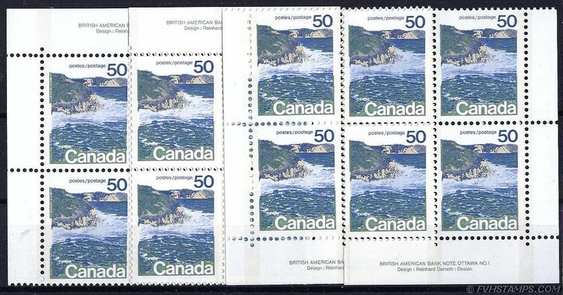 99. CANADA Plate Block 4-Corner matched sets, 1967-76, 11 diff. **MNH, VF incl: #608p; #609p; etc. |